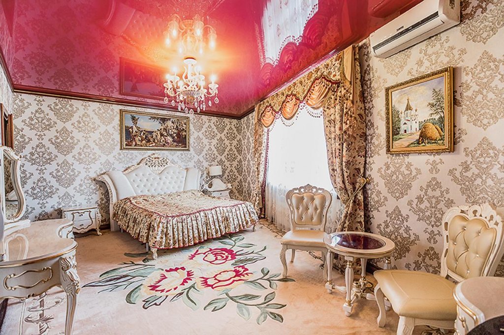 Люкс предназначен для людей, обладающих безупречным вкусом. Широчайшая, прочная, украшенная ручной резьбой кровать, элегантный, гламурный интерьер, светлый лак и изысканный текстиль погрузят Гостей в роскошную атмосферу и создадут романтическое настроение, позволив им почувствовать себя героями голливудского фильма.